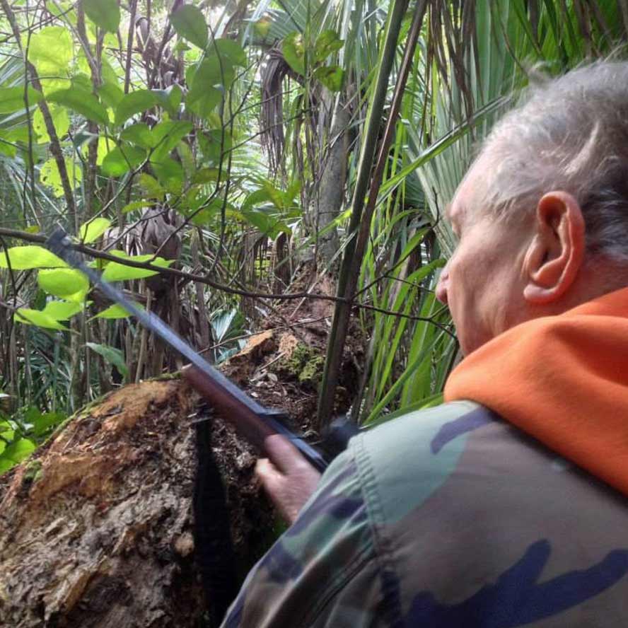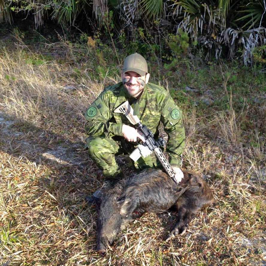 In February 2015, Erik, his father Charlie, and a group of friends returned to Moore Haven, Florida, for another hog hunting trip with Chappy’s Outfitters. Located near the southern edge of Lake Okeechobee, the Moore Haven area is well known among hunters for its large populations of feral hogs and for its diverse Florida terrain, ranging from open trails and pasture edges to dense palmetto and brush.